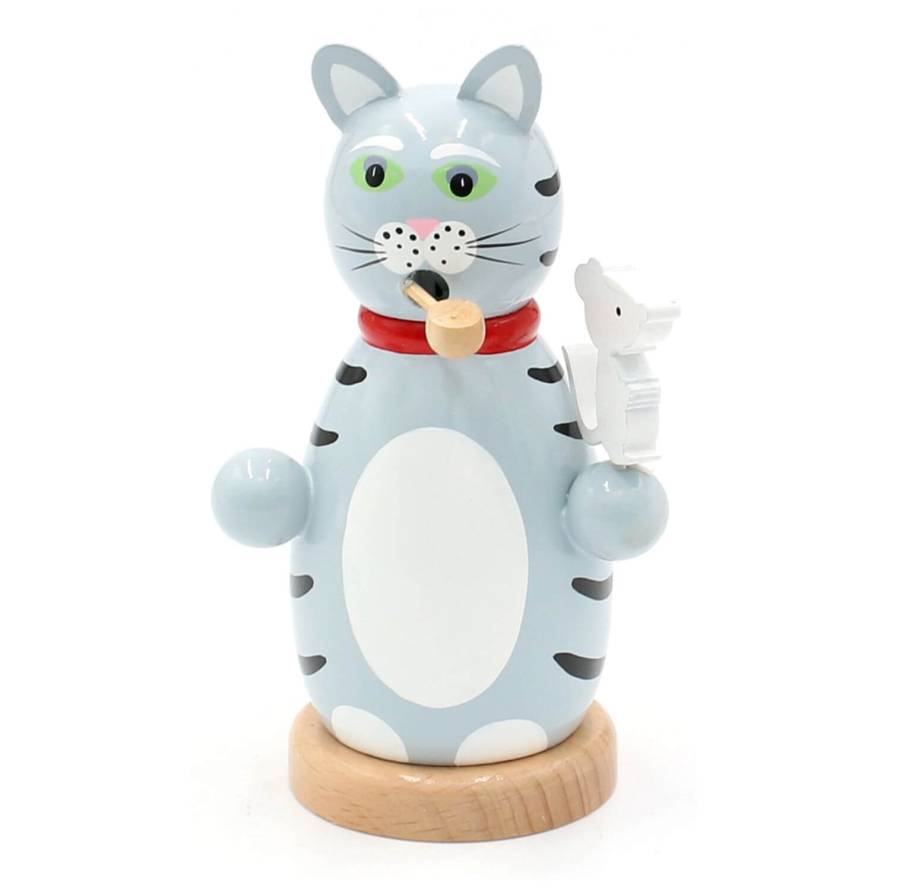 Märchenfigur Räuchermännchen Katze mit Maus grau